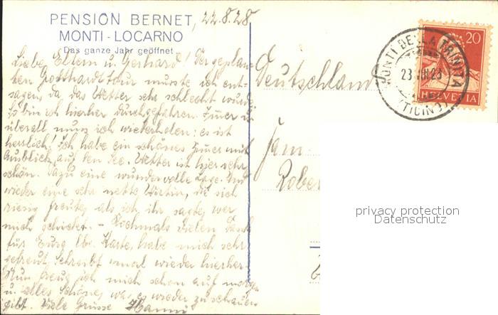 11636990 alte Postkarte Monti Locarno TI Pension Bernet postalisch gelaufen Erhaltung siehe scans KatCode: 11470210655962