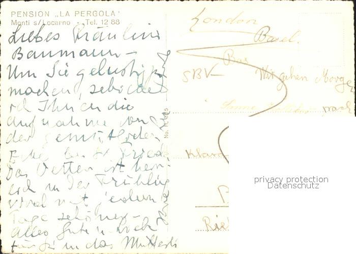 11656349 Monti Locarno TI Pension La Pergola postalisch nicht gelaufen Erhaltung siehe scans KatCode: 11470210655962