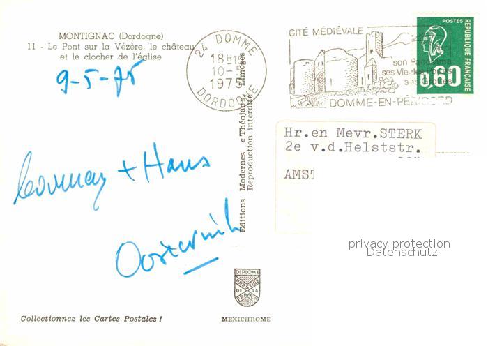 12688754 carte postale Montignac Dordogne Pont sur la Vezere Chateau Clocher de l’eglise postalisch gelaufen Erhaltung siehe scans [FriedD77] KatCode: 11170024424291
