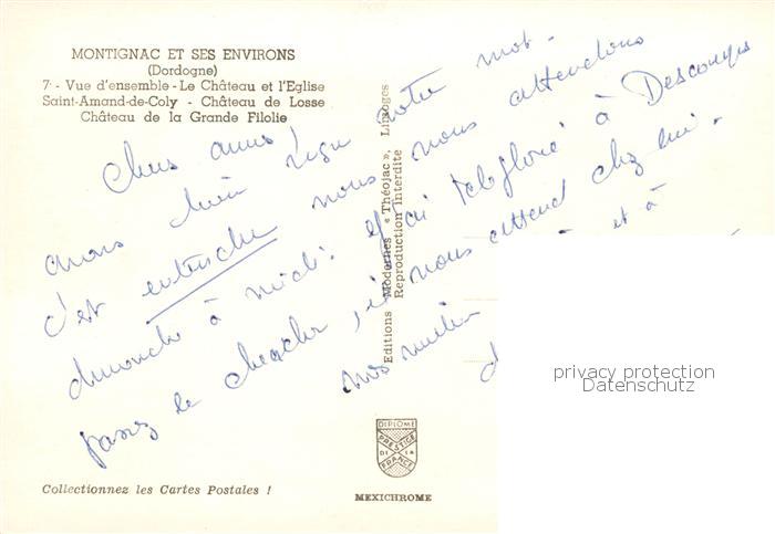 13814915 Montignac Dordogne Vue d’ensemble Le Chateau et l’Eglise Saint Amand de Coly Chateau de Losse Chateau de la Grande Filolie postalisch nicht gelaufen Erhaltung siehe scans [WerneD78] Wern Katcode 11170024424291