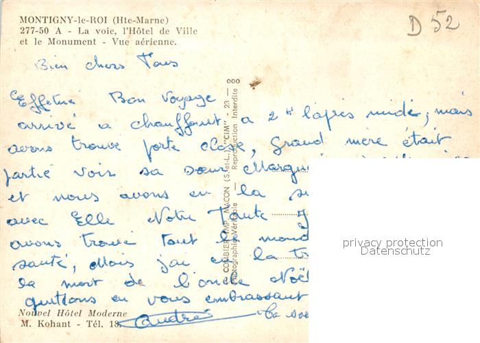 13612000 Montigny le Roi Hôtel de Ville Monument vue aérienne postalisch nicht gelaufen Erhaltung siehe scans [FriedD77] Frie Katcode 11170052252332