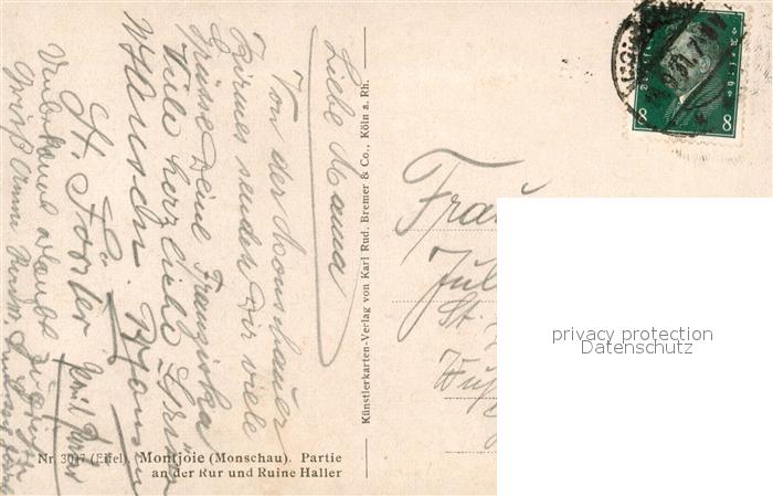 43369866 alte Postkarte Montjoie Monschau Partie an der Rur mit Ruine Halle Kuenstlerkarte postalisch gelaufen Erhaltung siehe scans [FriedD77] KatCode: 11110005354020