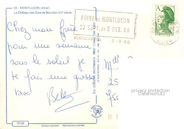 13521964 carte postale Montlucon Chateau ducs de Bourbon postalisch gelaufen Erhaltung siehe scans [KathaD81] KatCode: 11170003103185