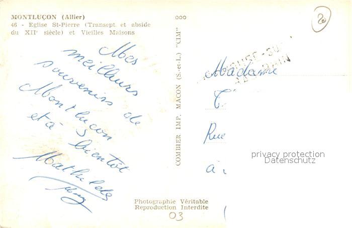 13489971 carte postale Montlucon Eglise Saint Pierre vieilles maisons postalisch gelaufen Erhaltung siehe scans [FriedD77] KatCode: 11170003103185