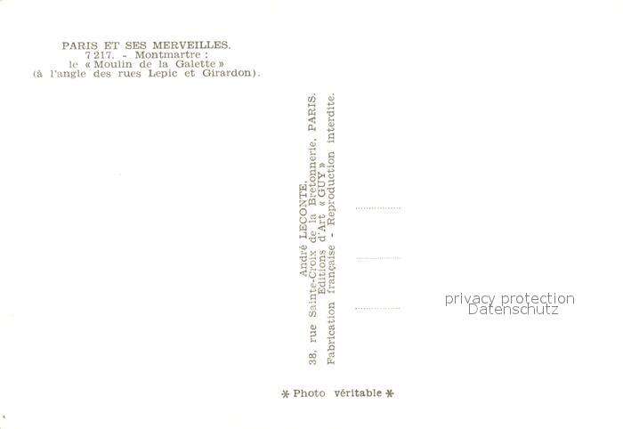 13710373 Montmartre Paris Moulin de la Galette postalisch nicht gelaufen Erhaltung siehe scans [FriedD77] Frie Katcode 11170075175056