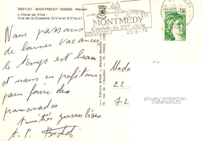 13581447 carte postale Montmedy Hotel de Ville Vue de la Citadelle postalisch gelaufen Erhaltung siehe scans [WerneD78] KatCode: 11170055355351