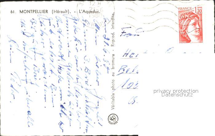 12240479 carte postale Montpellier Herault Aqueduc Kanal postalisch gelaufen Erhaltung siehe scans KatCode: 11170034334172