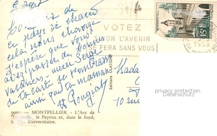 13535286 carte postale Montpellier Herault Arc de Triomphe le Peyrou au fond la Cité Universitaire postalisch gelaufen Erhaltung siehe scans [FriedD77] KatCode: 11170034334172