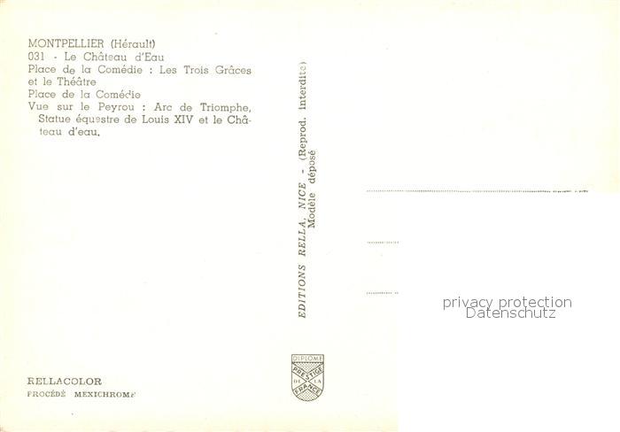 13304493 Montpellier Herault Chateau d Eau Place de la Comédie Les Trois Graces et le Théâtre Place de la Comédie Arc de Triomphe Statue Louis XIV postalisch nicht gelaufen Erhaltung siehe scans [FriedD77] KatCode: 11170034334172