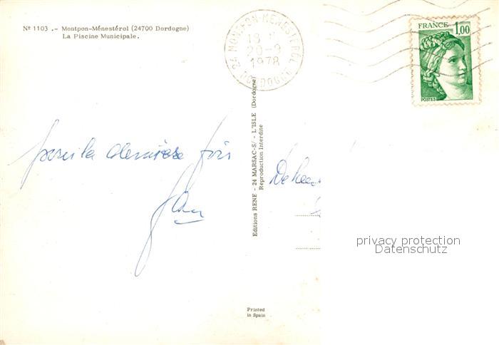 12954588 carte postale Montpon-Menesterol La Piscine Municipale postalisch gelaufen Erhaltung siehe scans [FriedD77] KatCode: 11170024324294