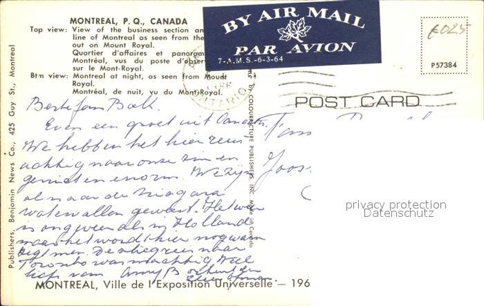 old postcard Montreal Quebec Business section Mount Royal postalisch gelaufen Erhaltung siehe scans