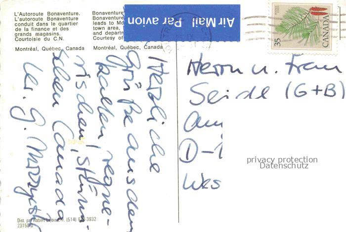 74092454 old postcard MONTREAL QUEBEC Canada Autoroute Bonaventura postalisch gelaufen Erhaltung siehe scans [WerneD78] KatCode: 14110