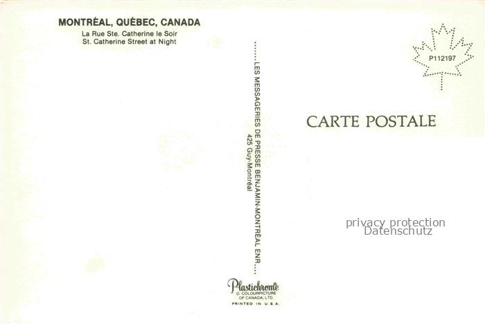 74092305 MONTREAL QUEBEC Canada La Rue Ste Catherine Soir Night postalisch nicht gelaufen Erhaltung siehe scans [IrynaD87] KatCode: 14110