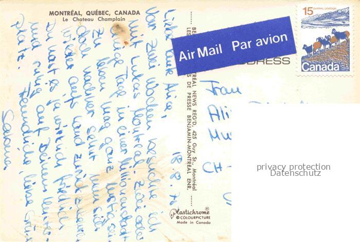 74092452 old postcard MONTREAL QUEBEC Canada Le Chateau Champlain postalisch gelaufen Erhaltung siehe scans [WerneD78] KatCode: 14110