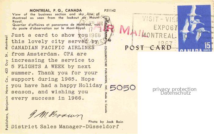 74128717 old postcard MONTREAL QUEBEC Canada View of business section and skyline as seen from the lookout on Mount Royal postalisch gelaufen Erhaltung siehe scans [FriedD77] KatCode: 14110