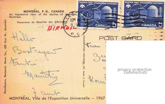 74132461 old postcard MONTREAL QUEBEC Canada Ville de Exposition Universalle postalisch gelaufen Erhaltung siehe scans [IrynaD87] KatCode: 14110