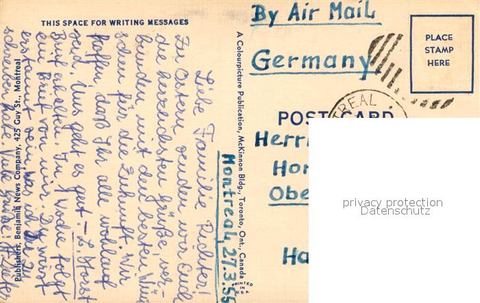 old postcard Montreal Quebec Dominion Square St James Cathedral Sun Life Building postalisch gelaufen Erhaltung siehe scans [FriedD77]