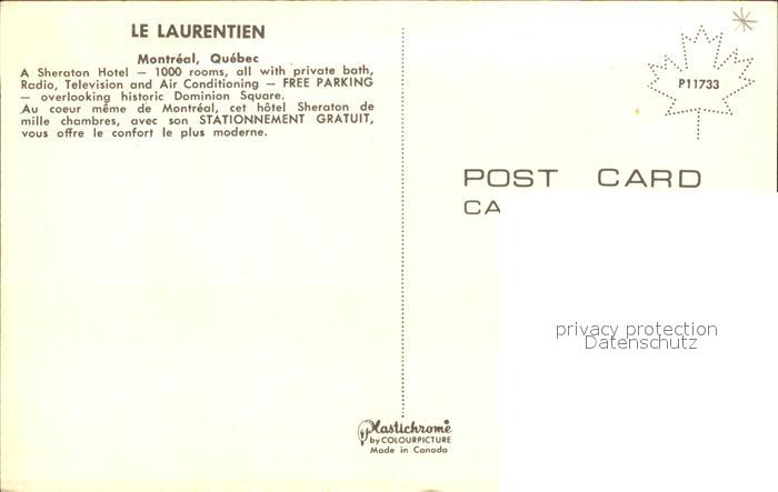 Montreal Quebec Hotel Laurentien postalisch nicht gelaufen Erhaltung siehe scans