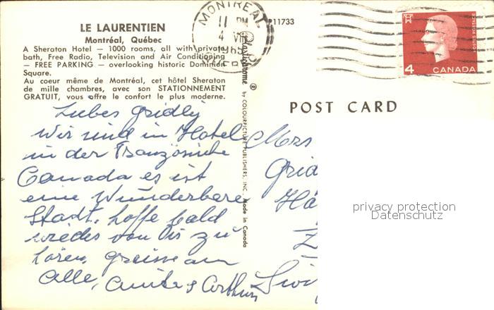 old postcard Montreal Quebec Hotel Laurentien Sheraton Hotel postalisch gelaufen Erhaltung siehe scans