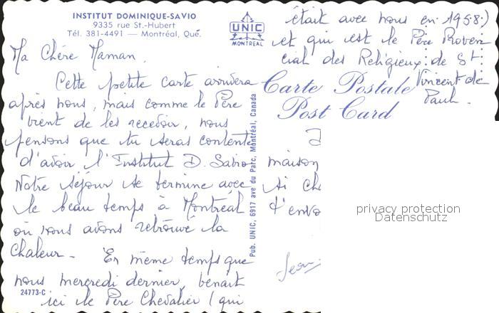 Montreal Quebec Institut Dominique Savio postalisch nicht gelaufen Erhaltung siehe scans