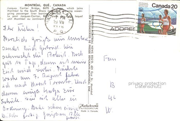 old postcard Montreal Quebec Jacques Cartier Bridge postalisch gelaufen Erhaltung siehe scans