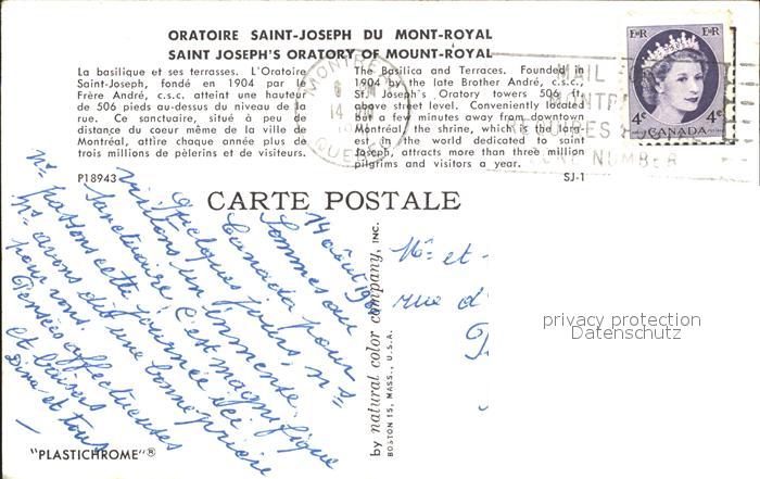 old postcard Montreal Quebec Oratoire Saint Joseph du Mont-Royal postalisch gelaufen Erhaltung siehe scans