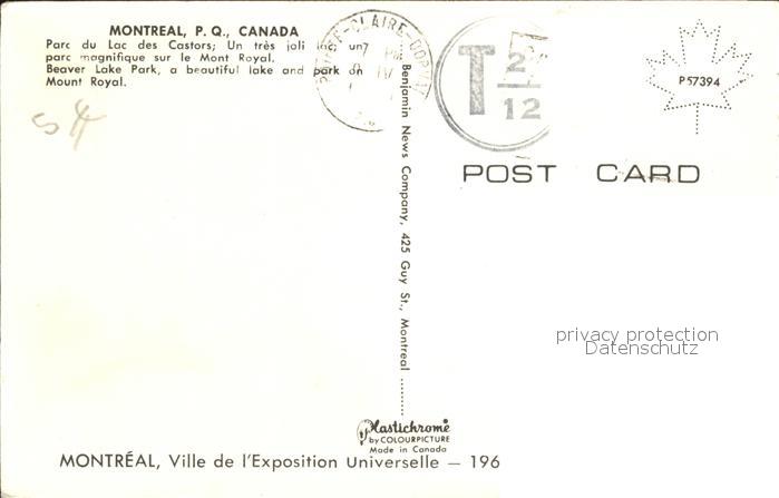 Montreal Quebec Parcdu Lac des Castors postalisch nicht gelaufen Erhaltung siehe scans
