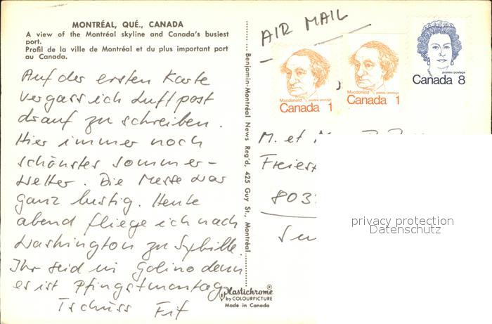 old postcard Montreal Quebec Port and Skyline Steamer postalisch gelaufen Erhaltung siehe scans