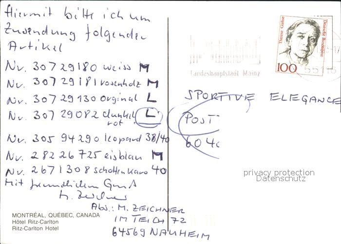 old postcard Montreal Quebec Ritz Carlton Hotel postalisch gelaufen Erhaltung siehe scans [LiesaD40 kt120box]