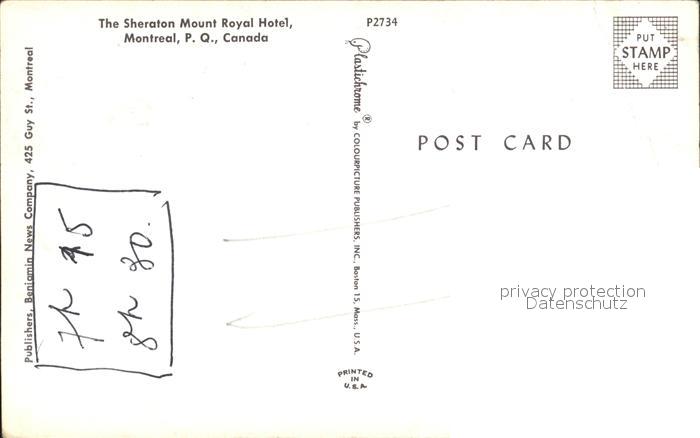 Montreal Quebec Sheraton Mount Royal Hotel postalisch nicht gelaufen Erhaltung siehe scans