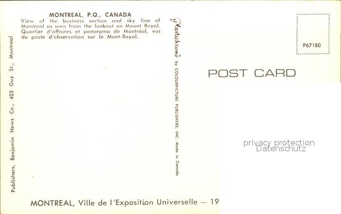 Montreal Quebec Skyline postalisch nicht gelaufen Erhaltung siehe scans