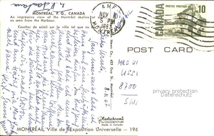 old postcard Montreal Quebec Skyline at Night postalisch gelaufen Erhaltung siehe scans