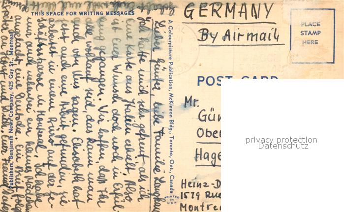 old postcard Montreal Quebec The New Laurentien Hotel postalisch gelaufen Erhaltung siehe scans [FriedD77]