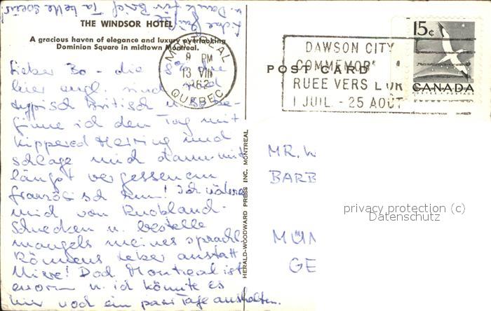 old postcard Montreal Quebec The Windsor Hotel postalisch gelaufen Erhaltung siehe scans