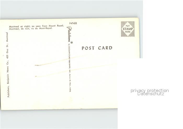 Montreal Quebec View from Mount Royal at night postalisch nicht gelaufen Erhaltung siehe scans