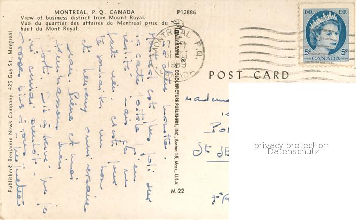 old postcard Montreal Quebec View of business district from Mount Royal postalisch gelaufen Erhaltung siehe scans [WerneD78]
