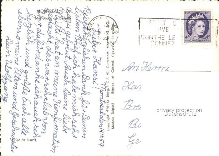 old postcard Montreal Quebec postalisch gelaufen Erhaltung siehe scans [LiesaD40 kt120box]