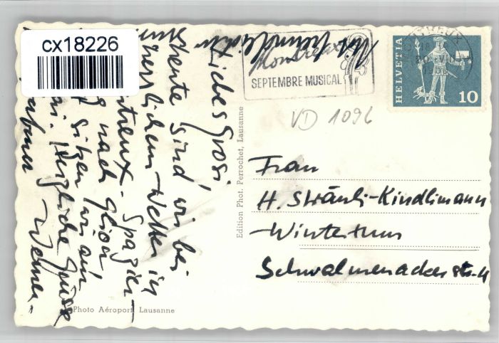 10724269 alte Postkarte Montreux VD Montreux [Stempelabschlag] La Corniche Fliegeraufnahme postalisch gelaufen KatCode: 11470240845874