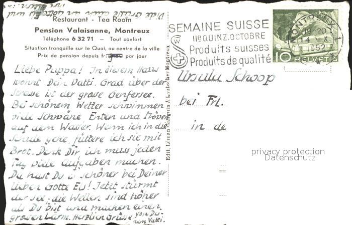 11736166 alte Postkarte Montreux VD Pension Valaisanne postalisch gelaufen Erhaltung siehe scans KatCode: 11470240845874