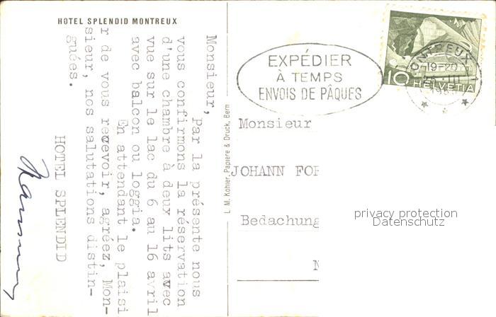 11736478 alte Postkarte Montreux VD Splendid Hotel postalisch gelaufen Erhaltung siehe scans KatCode: 11470240845874