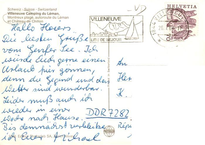 13907709 alte Postkarte Montreux VD Villeneuve Camping du Leman et Chateau de Chillon Vue aerienne postalisch gelaufen Erhaltung siehe scans [WerneD78] KatCode: 11470240845874
