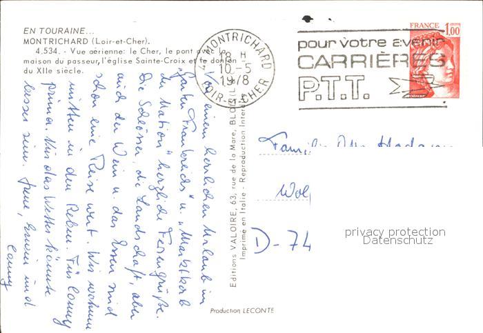 12244987 carte postale Montrichard Fliegeraufnahme Cher et Pont postalisch gelaufen Erhaltung siehe scans KatCode: 11170041141151