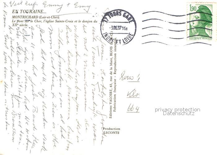 12941596 carte postale Montrichard Pont sur le Cher Eglise Sainte Croix et le donjon postalisch gelaufen Erhaltung siehe scans [WerneD78] KatCode: 11170041141151