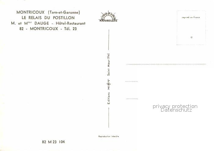 12711733 Montricoux Le Relais du Postillon Hotel Restaurant vue sur la ville postalisch nicht gelaufen Erhaltung siehe scans [FriedD77] KatCode: 11170082282132