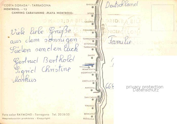 Montroig Camping Caravaning Playa Montroig postalisch nicht gelaufen Erhaltung siehe scans [WerneD78]