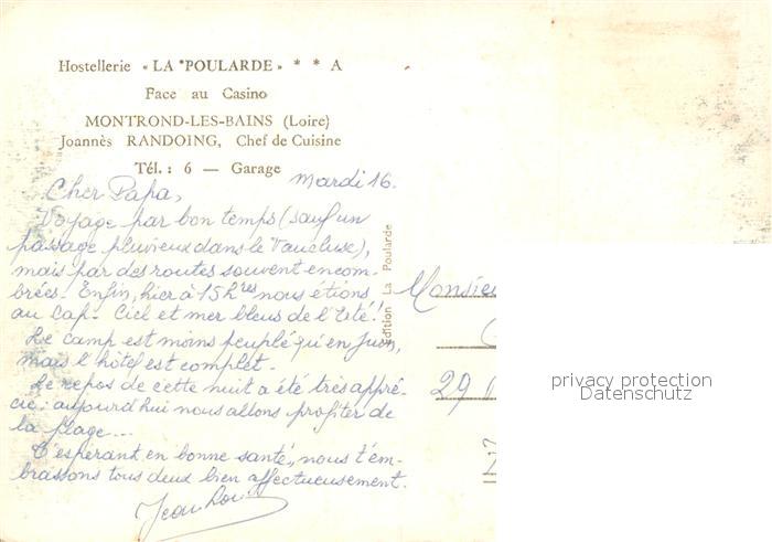 13585577 Montrond-les-Bains Hostellerie la Poularde Casino postalisch gelaufen Erhaltung siehe scans [KathaD81] carte postale Kath Katcode 11170042142149
