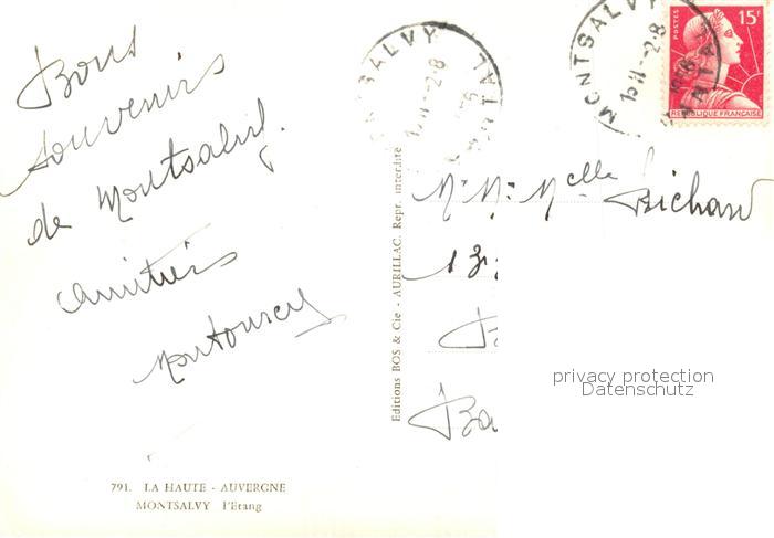 13640308 Montsalvy Paysage Etang postalisch gelaufen Erhaltung siehe scans [FriedD77] carte postale Frie Katcode 11170015115134