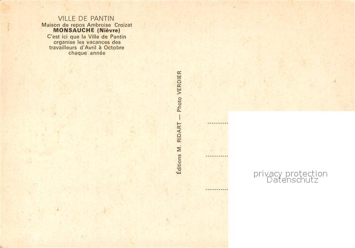 13593183 Montsauche-les-Settons Ville de Pantin Maison de repos postalisch nicht gelaufen Erhaltung siehe scans [FriedD77] Frie Katcode 11170058158180