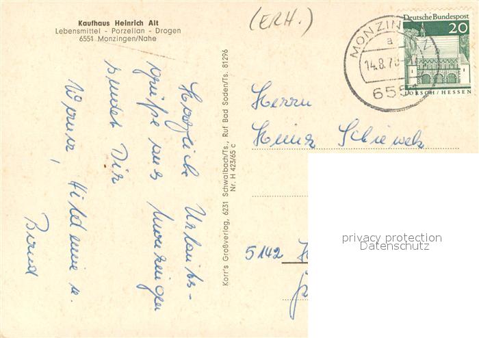 73680379 alte Postkarte Monzingen Fachwerkhaus Berghaus Fliegeraufnahme postalisch gelaufen Erhaltung siehe scans [FriedD77] KatCode: 11110007133067