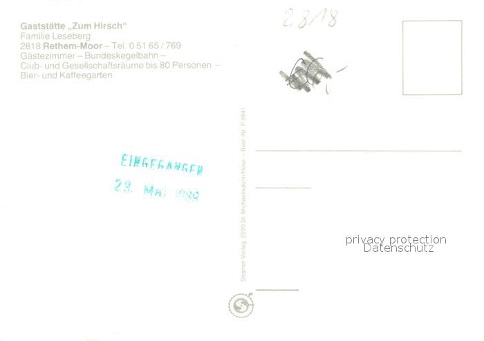 73643173 Moor Rethem Aller Gaststaette Zum Hirsch Wiese Bar Gaststube Kaffeegarten postalisch nicht gelaufen Erhaltung siehe scans [WerneD78] KatCode: 11110003358018